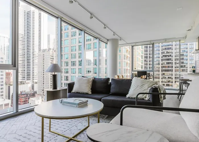 The 116 m² Blueground River North 2bd apartment CHI-1114 is situated in the Magnificent Mile district, around a 25-minute walk from Lincoln Park Zoo, which is higly recommended for a family visit. Set within walking distance of the skyscraper 360 Chicago Observation Deck, this apartment with a shared lounge overlooks the city.